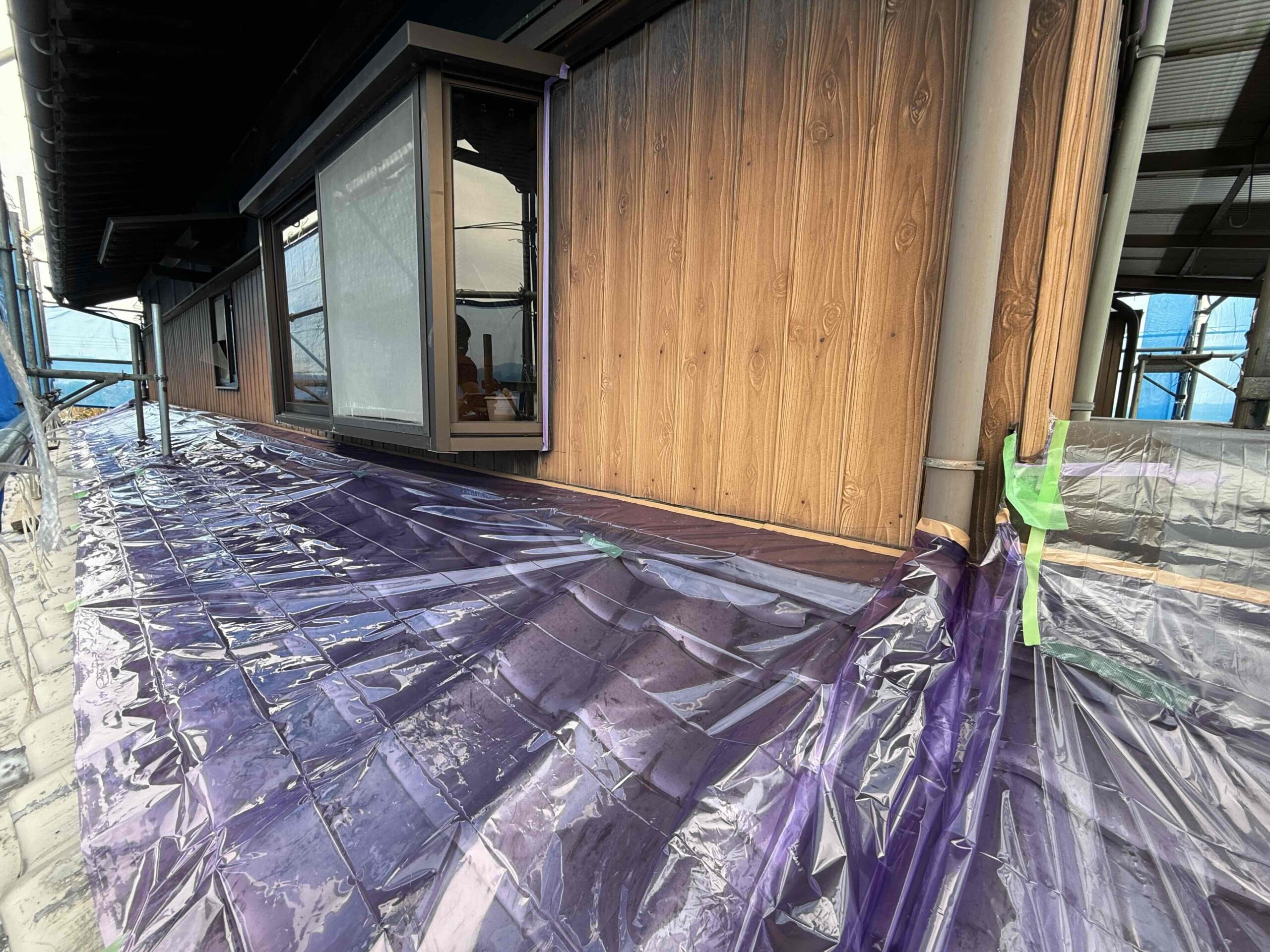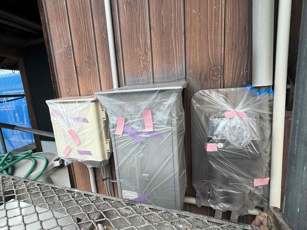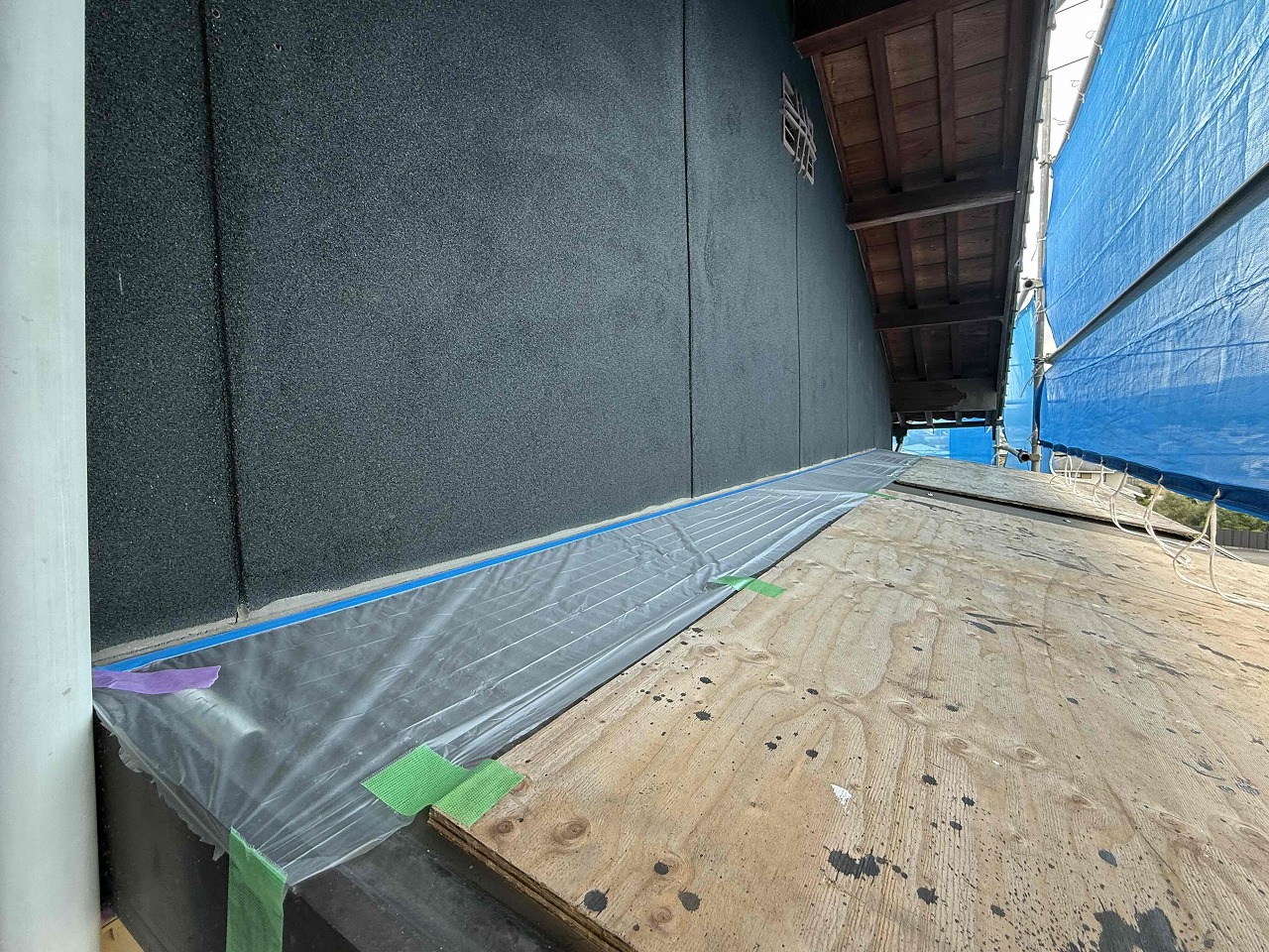 先日、高圧洗浄を行っており、本日は養生作業を行いました。