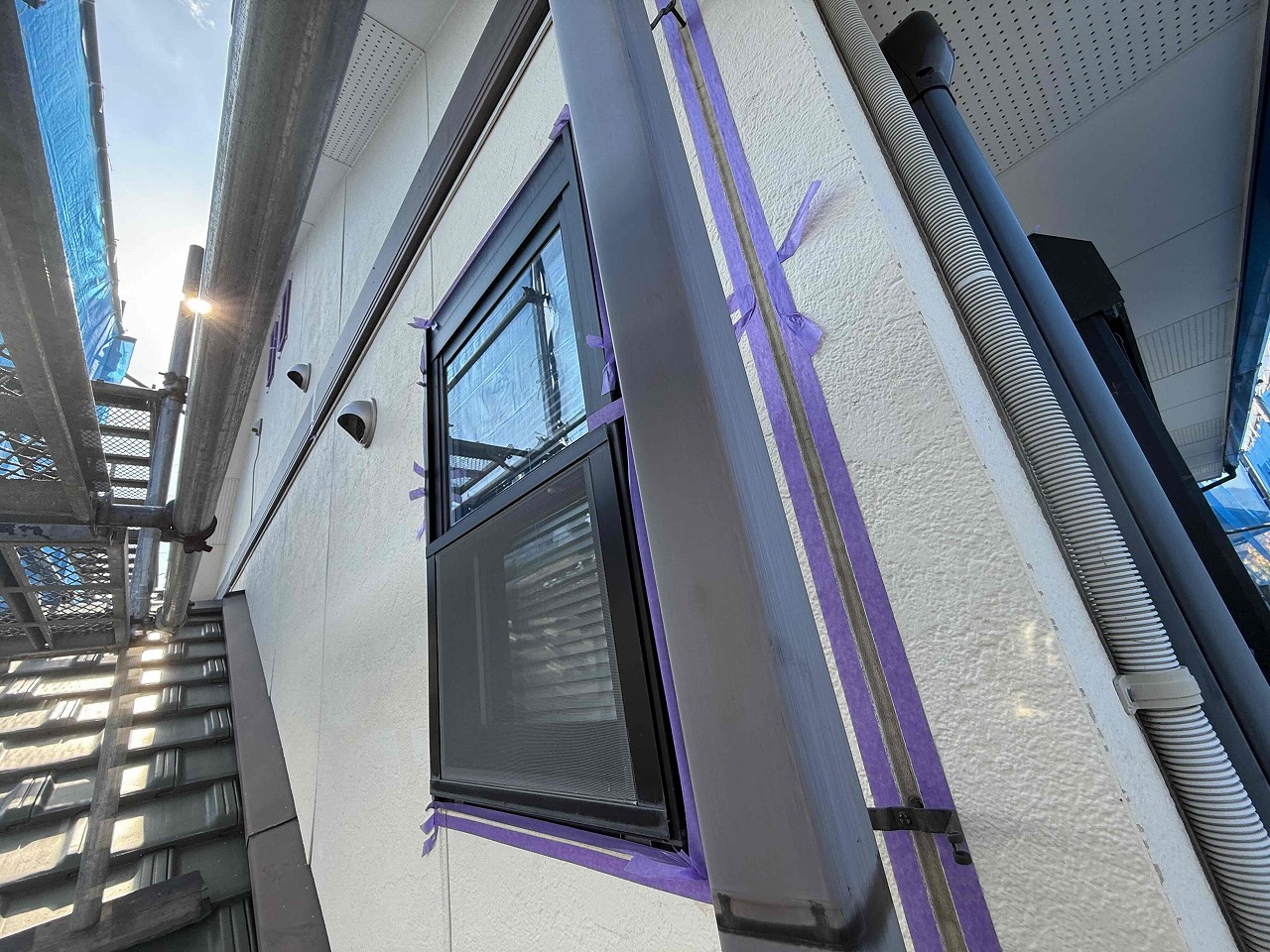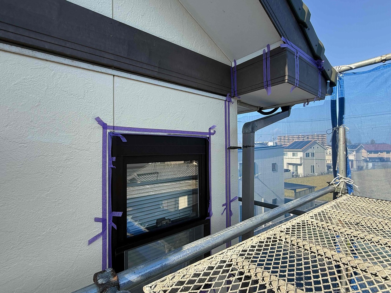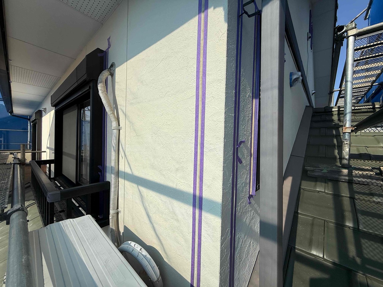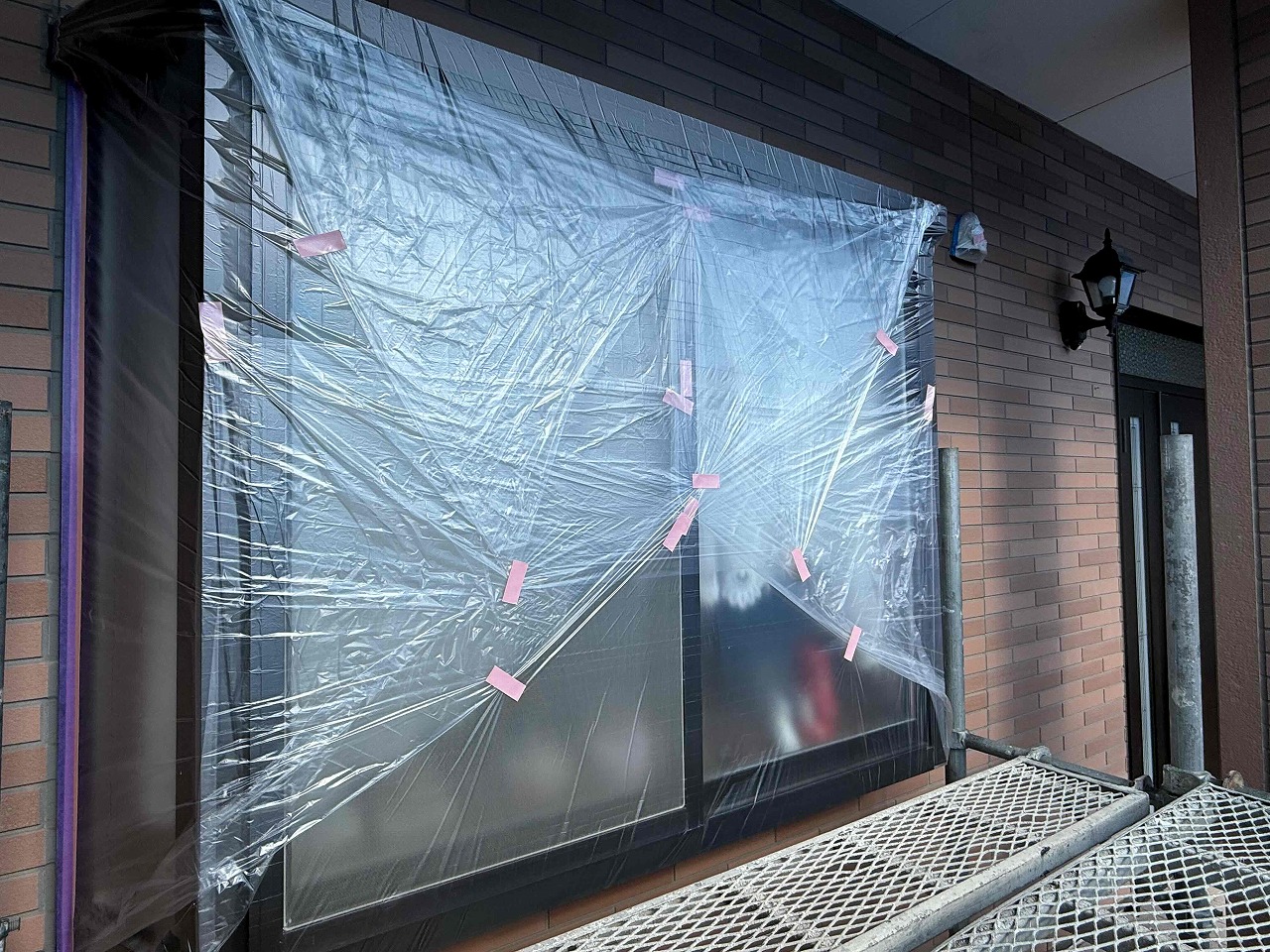 先日、高圧洗浄が完了しており、本日、養生作業を行いました。