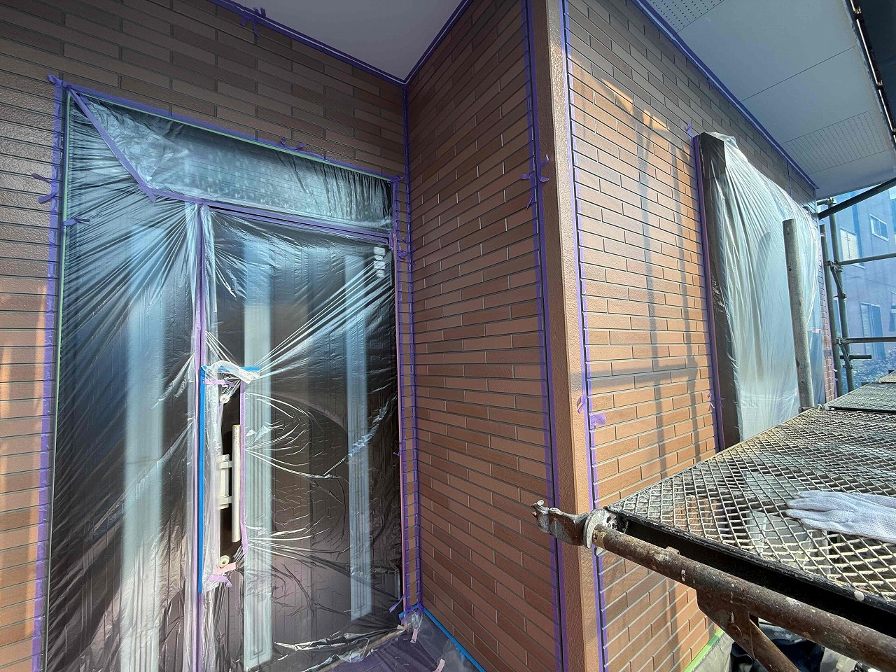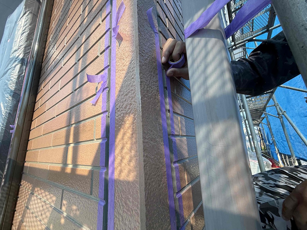 先日、外壁塗装工事の上塗りが完了しており、本日、目地コーキングの養生作業を行いました。明日、コーキングの新設工事を行っていく予定となっております。引き続きよろしくお願いいたします!😄