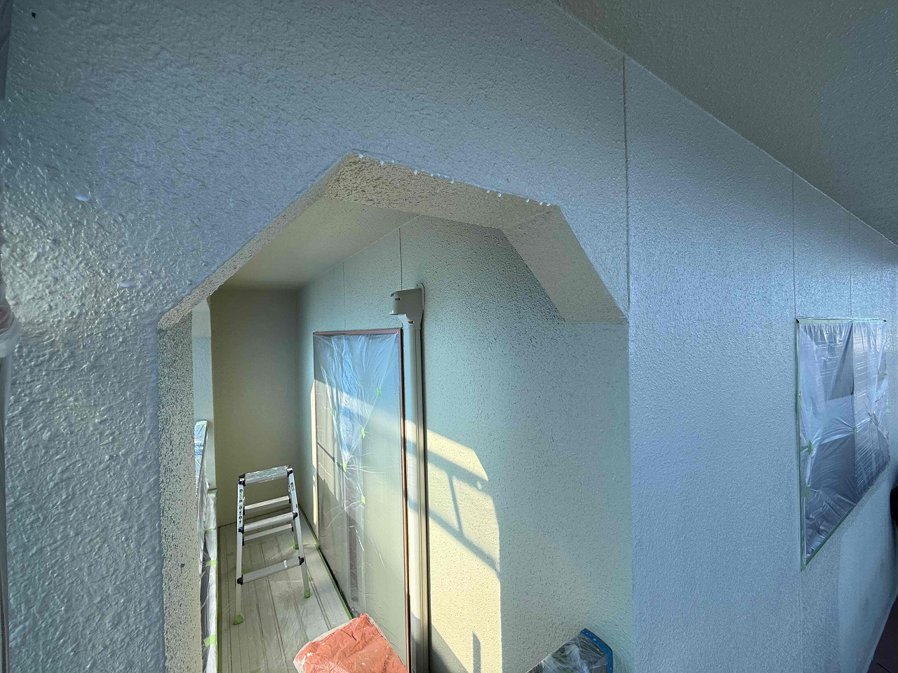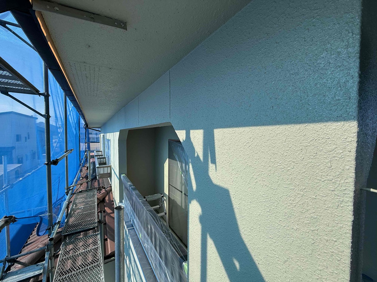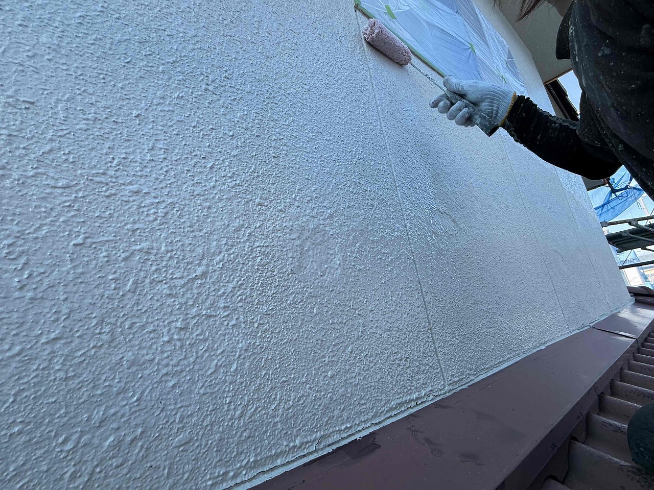 先日、養生作業が完了しており、本日は外壁塗装工事の下塗り(1回目塗装)を行いました。次回、外壁塗装工事の中塗り(2回目塗装)を行っていく予定となっております。引き続きよろしくお願いいたします!😄