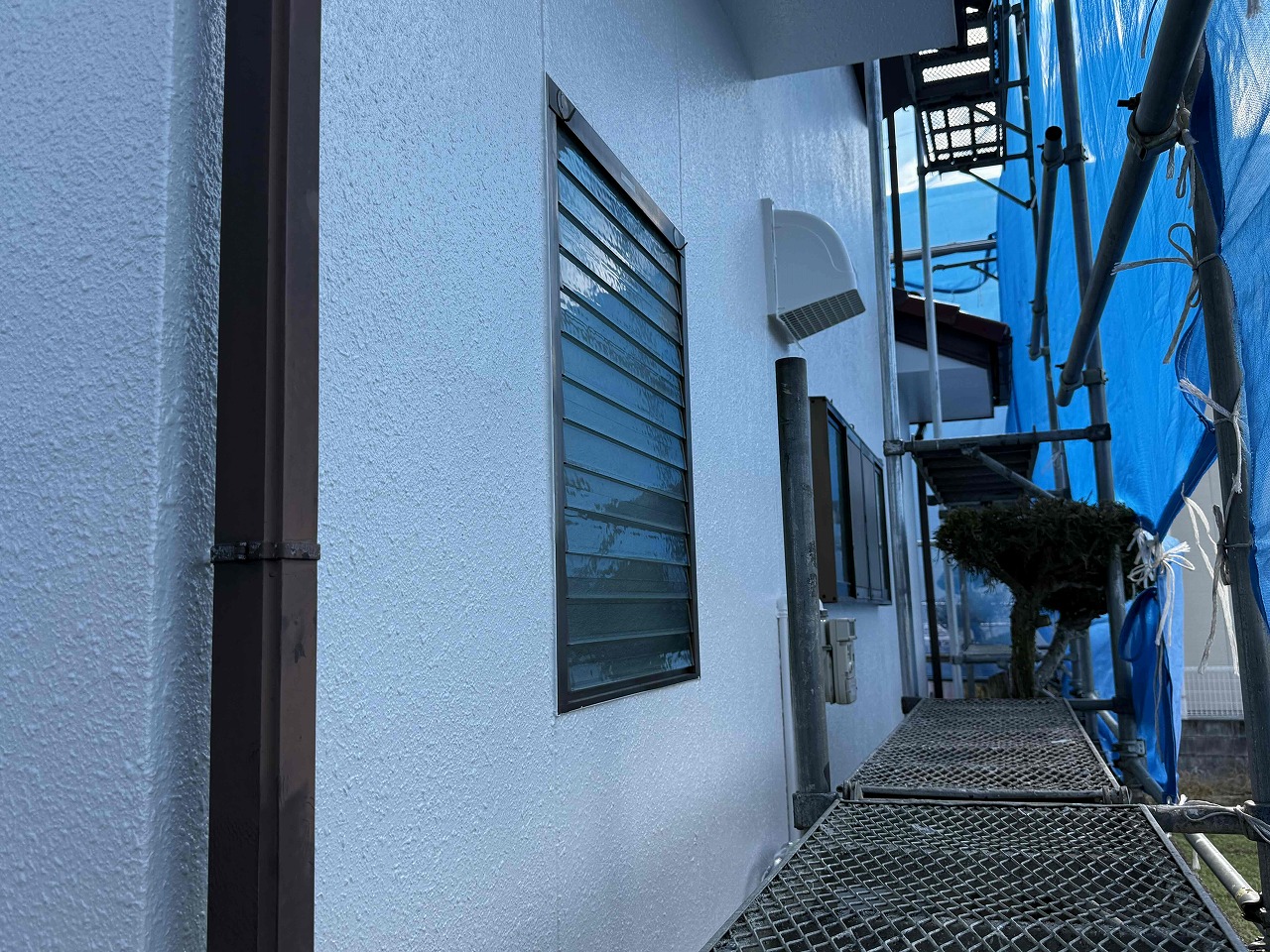 先日、外壁塗装の中塗り(2回目塗装)が完了しており、本日は上塗り(3回目塗装)を行いました。次回、屋根塗装を行っていく予定となっております。引き続きよろしくお願いいたします!😄