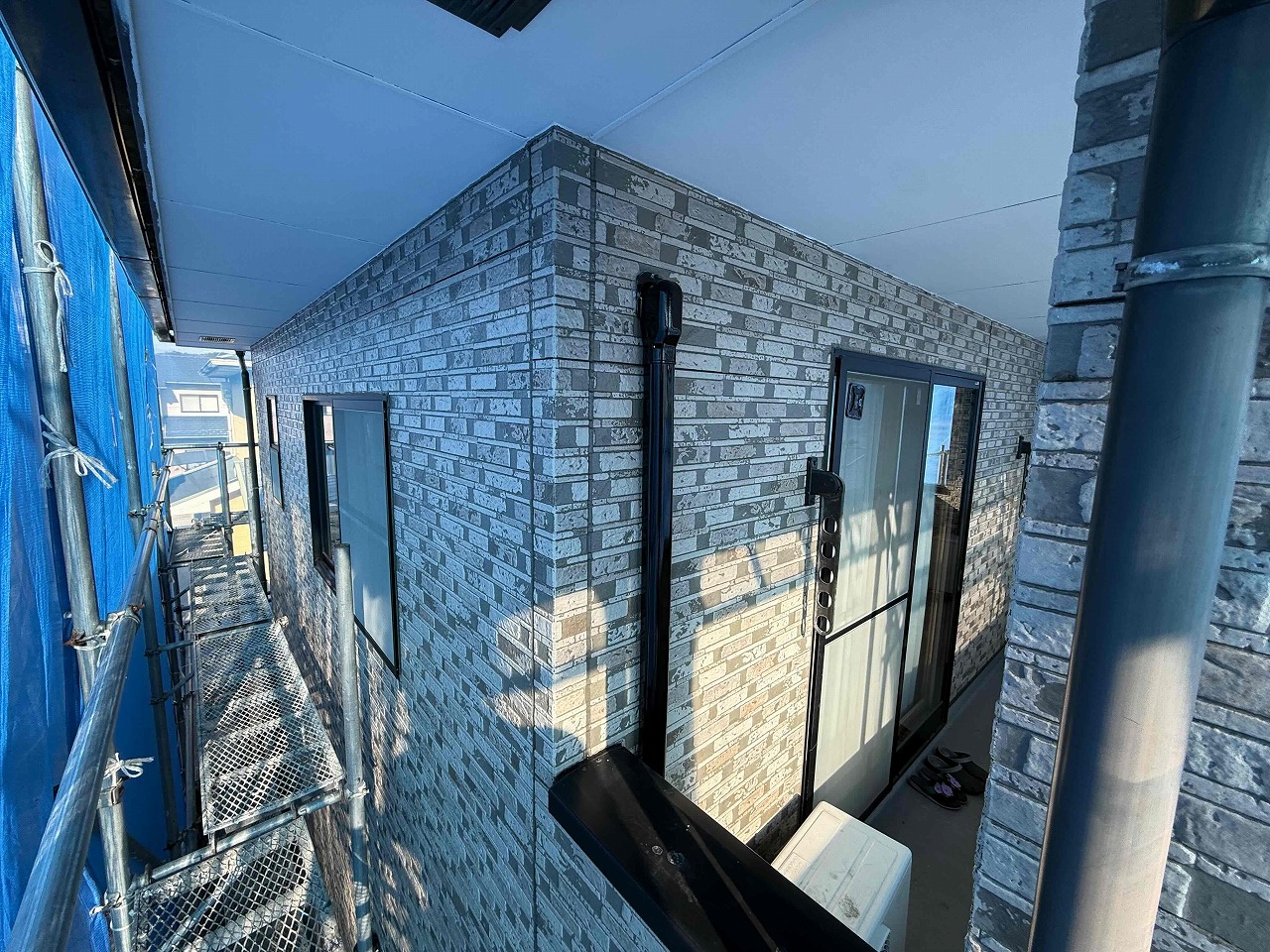 本日は外壁の上塗りを行い、養生を撤去し、作業を終了いたしました。