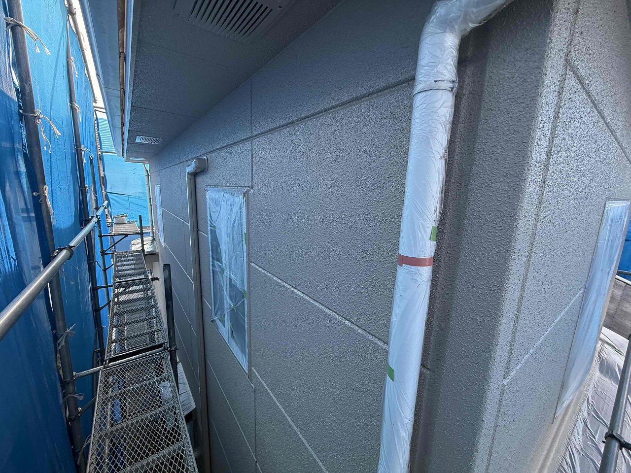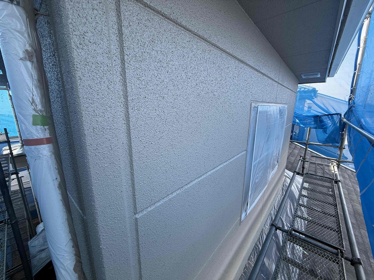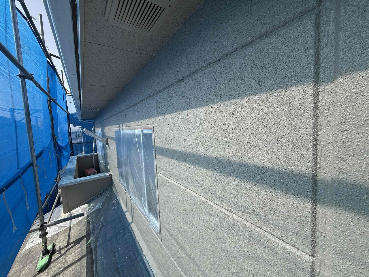 先日、屋根・外壁塗装工事の中塗り(2回目塗装)が完了しており、本日は2階屋根部分の上塗り(3回目塗装)と外壁の上塗り(3回目塗装)を行いました。次回、1階部分の上塗り(3回目塗装)と、付帯パーツ類の塗装を行っていく予定となっております。引き続きよろしくお願いいたします!😄