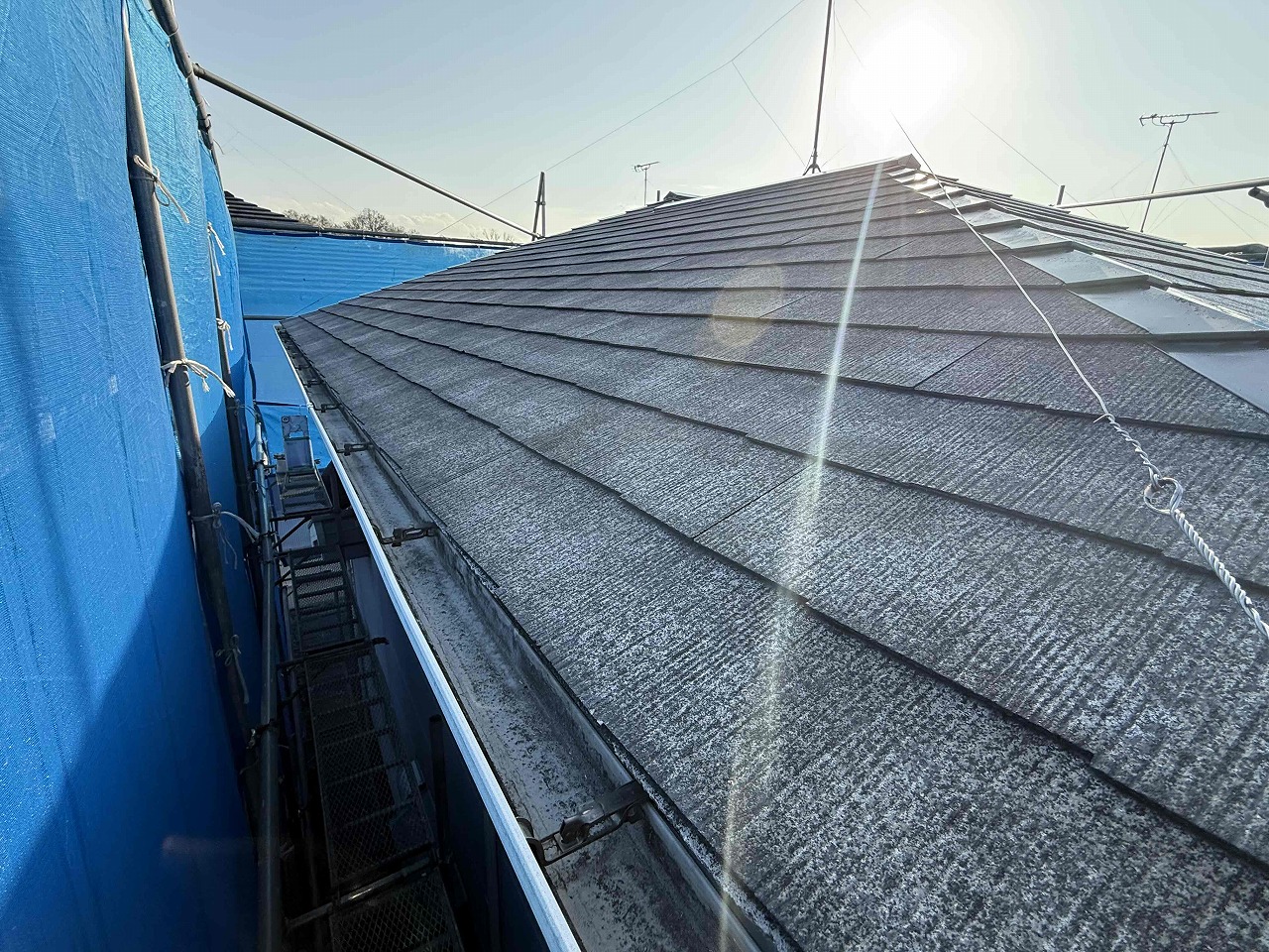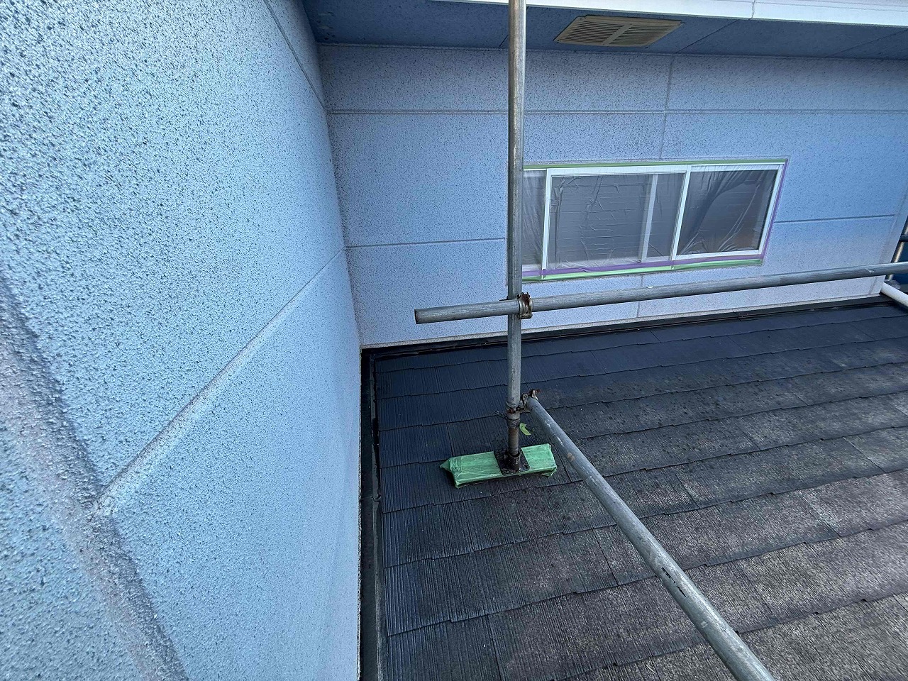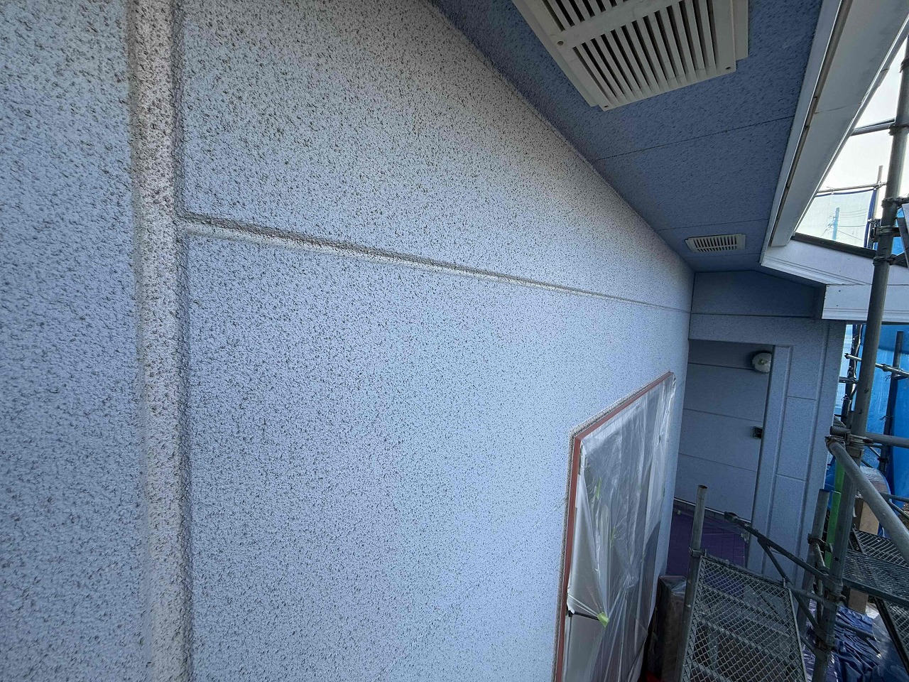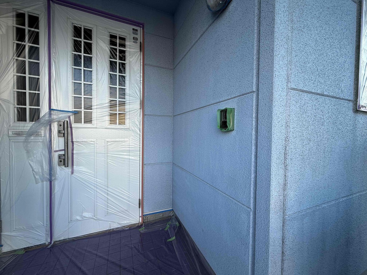 先日、養生作業が完了しており、本日は屋根・外壁の下塗り(1回目塗装)を行いました。明日、中塗り(2回目塗装)を行っていく予定となっております。引き続きよろしくお願いいたします!