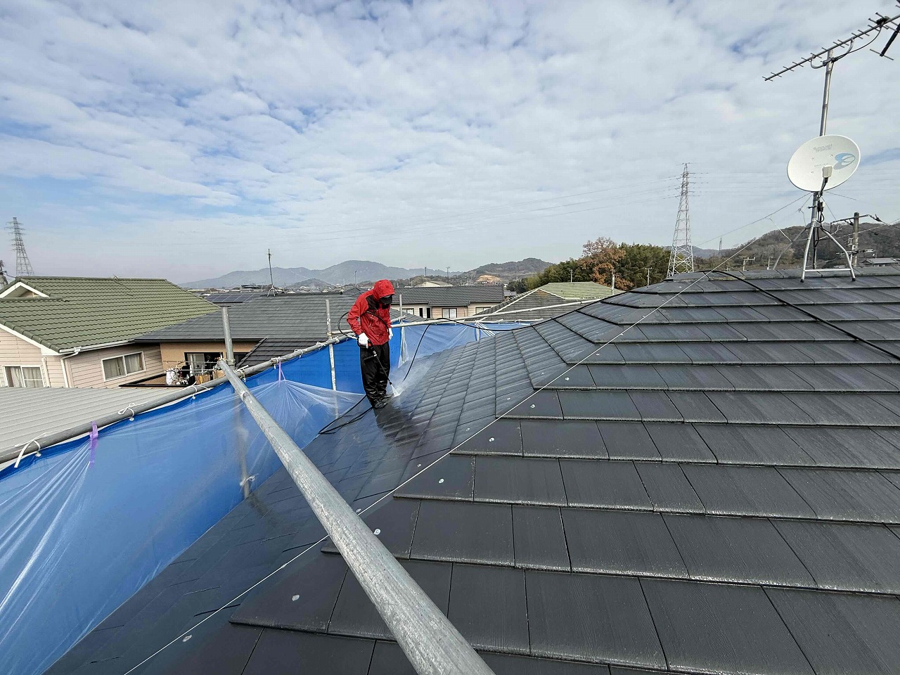 1.足場設置 2.高圧洗浄 3.屋根塗装3回塗り 4.足場解体 5.完工