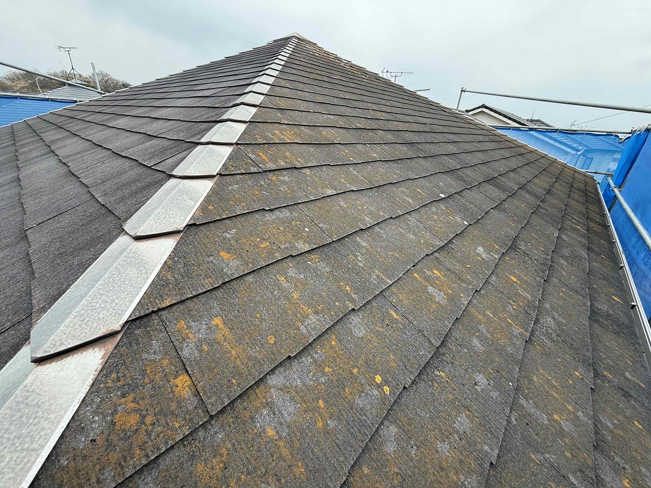 屋根の塗膜が薄くなっており、防水機能が弱まっていた。